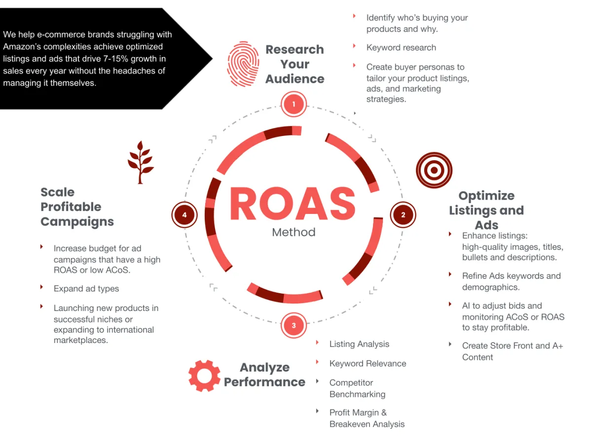 We manage your Amazon advertising campaigns from start to finish. This includes keyword research, setting up campaigns, monitoring performance, and adjusting strategies based on data. We ensure your ads reach the right audience, driving sales and improving your return on ad spend (ROAS).